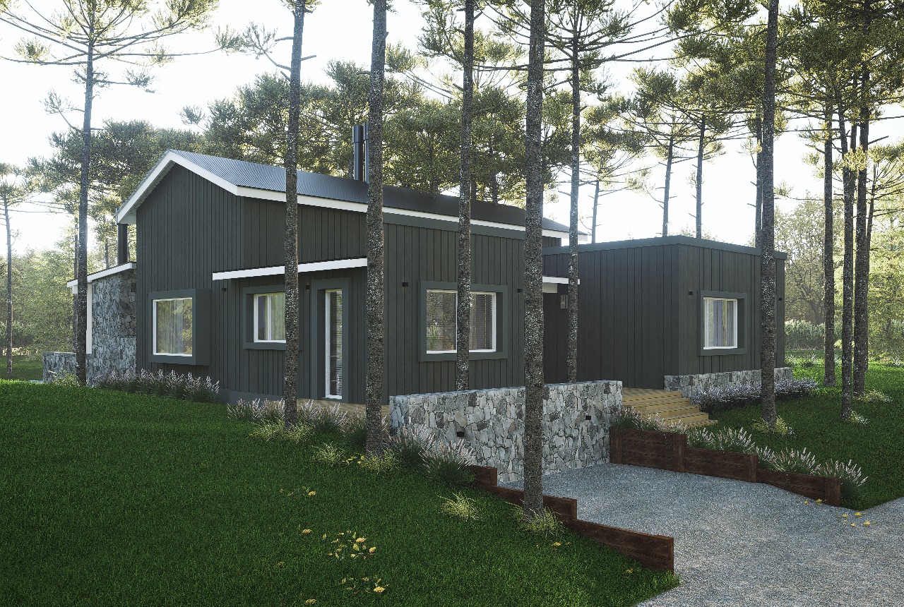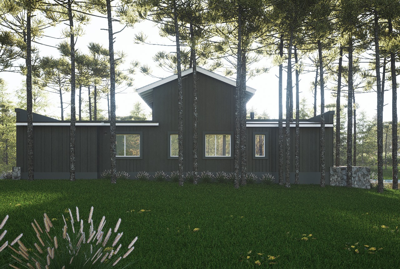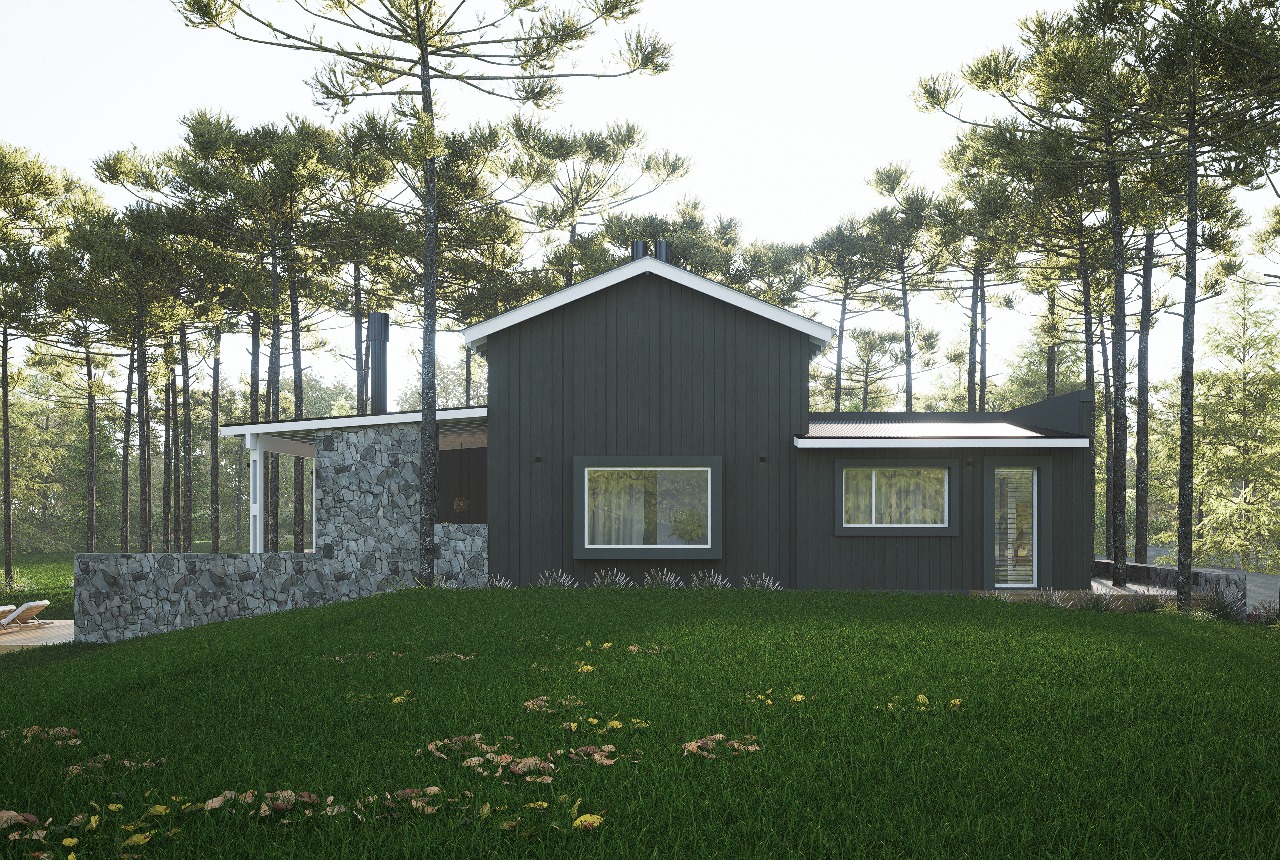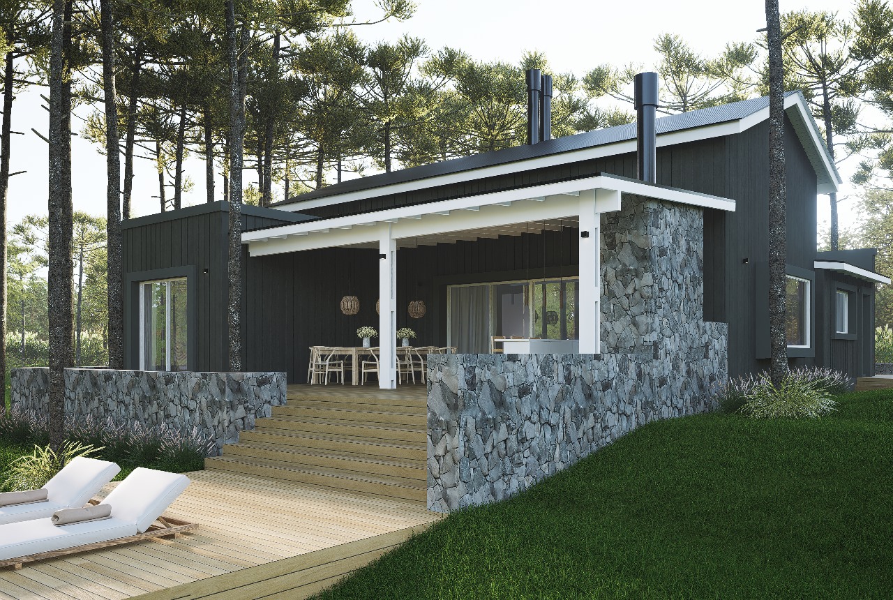 Living comedor (con hogar a leña revestido en piedra o sidding)