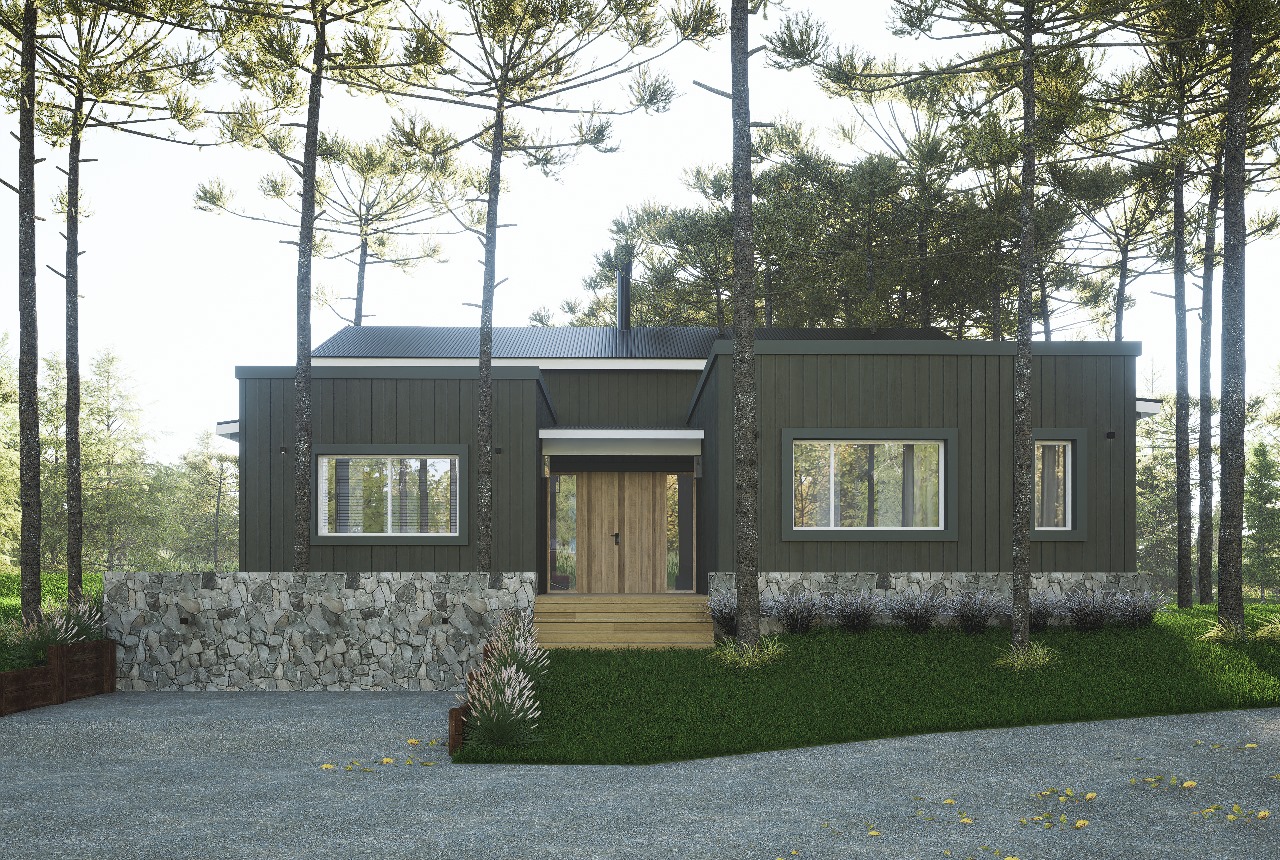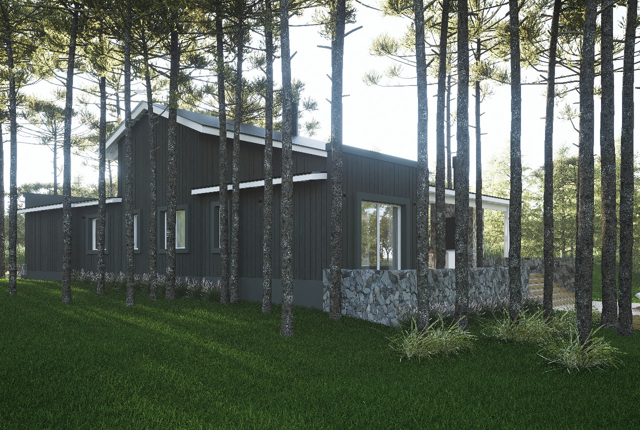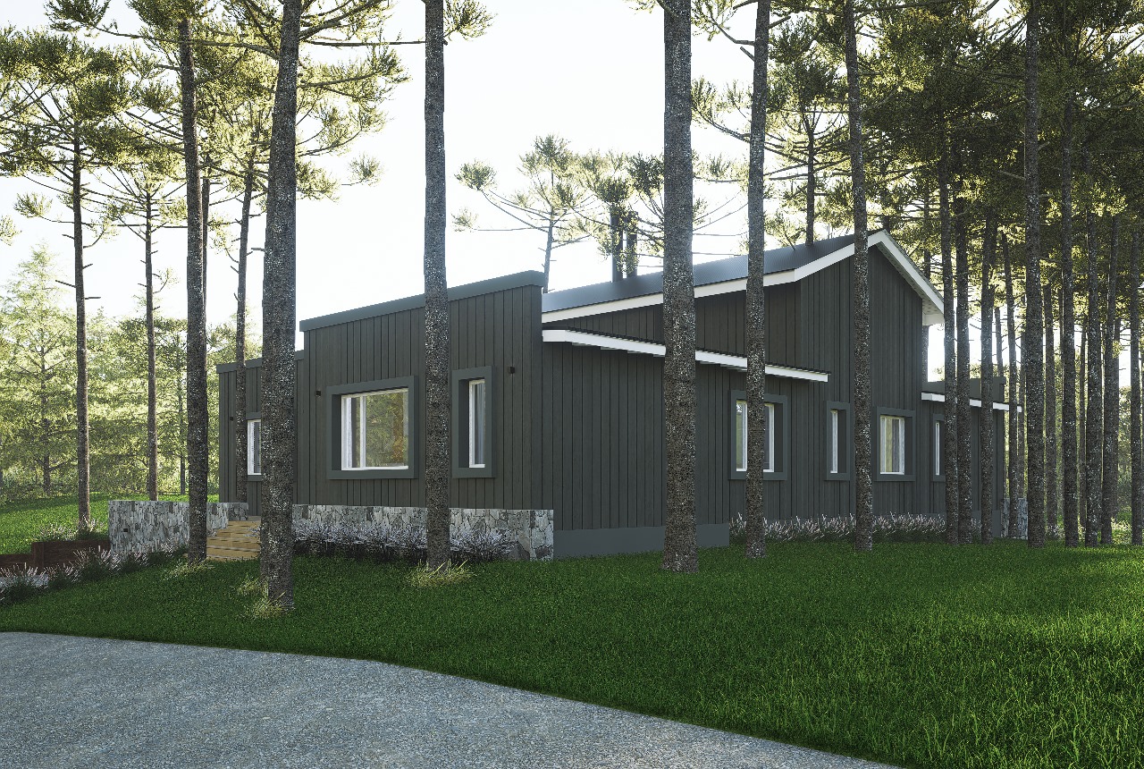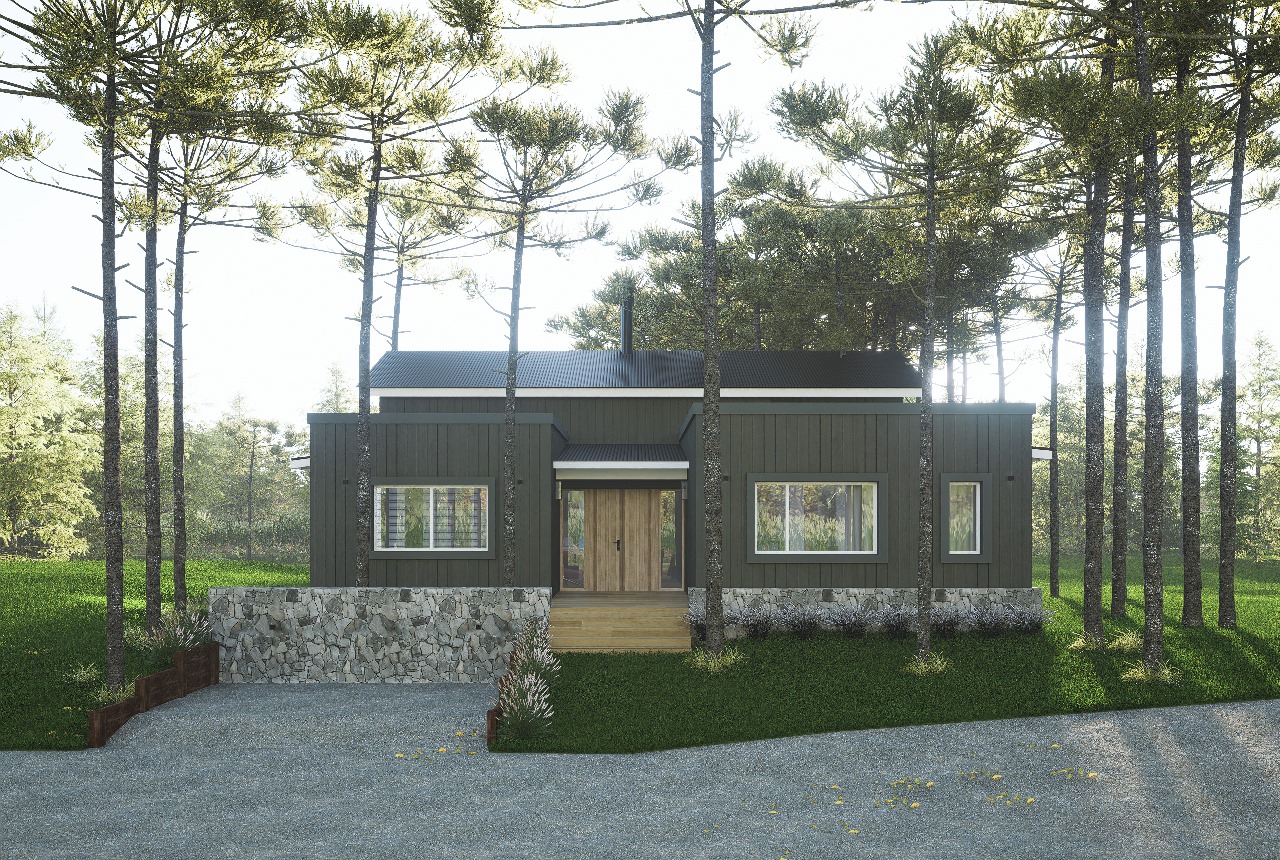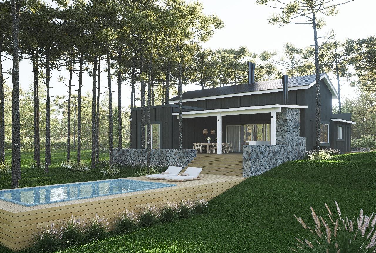 Living comedor (con hogar a leña revestido en piedra o sidding)